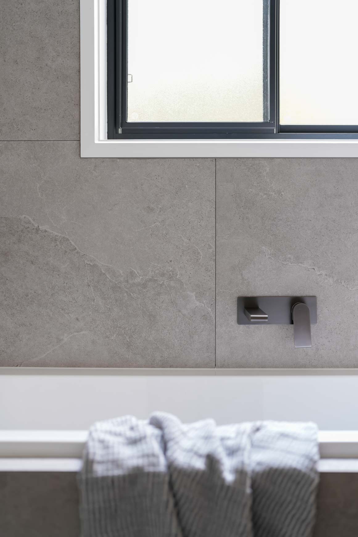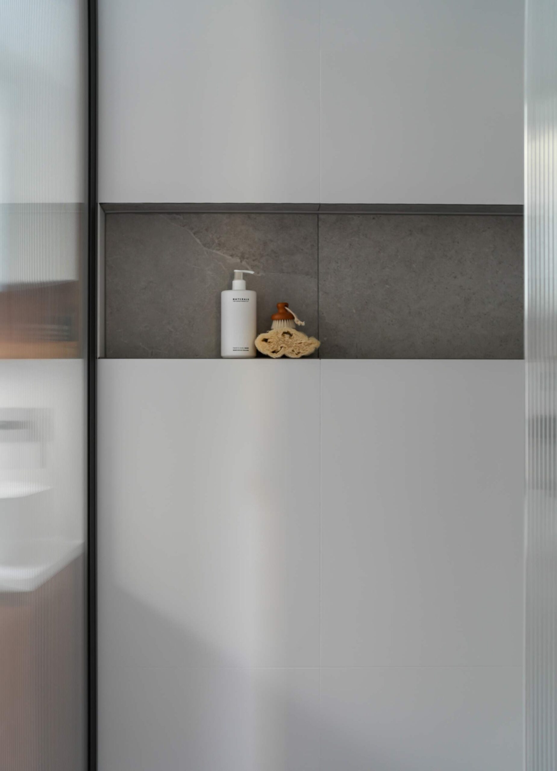 To add a modern edge, we selected gunmetal tapware, which contrasts beautifully with the softer tones. Recessed strip lighting in niches adds subtle ambient lighting while highlighting key design elements.