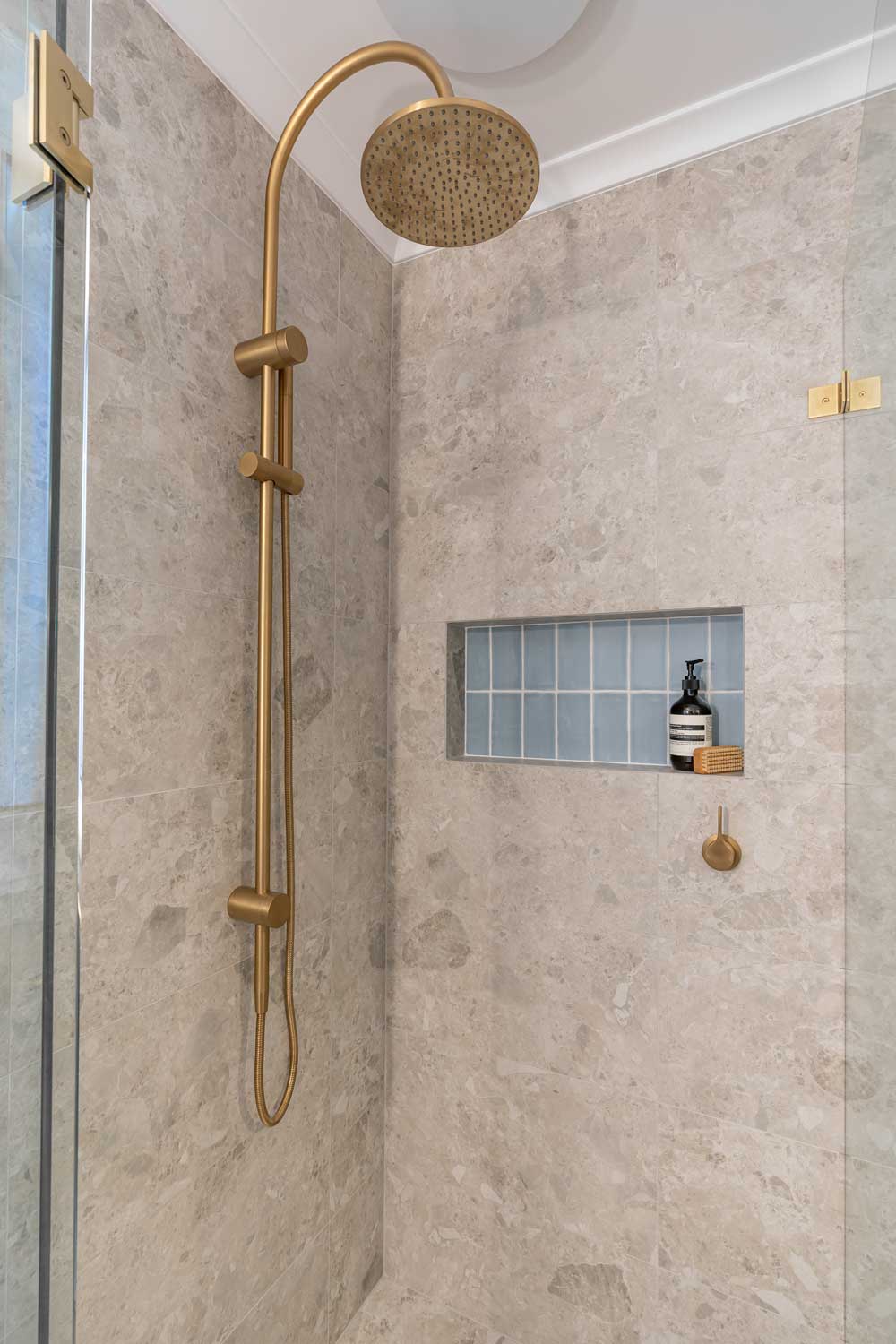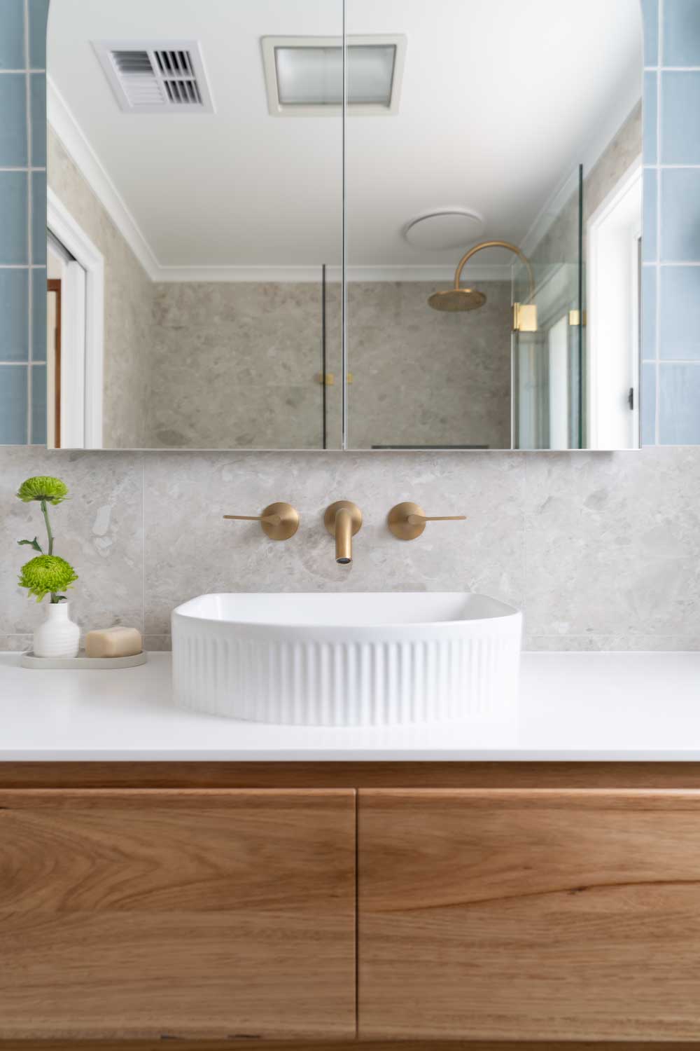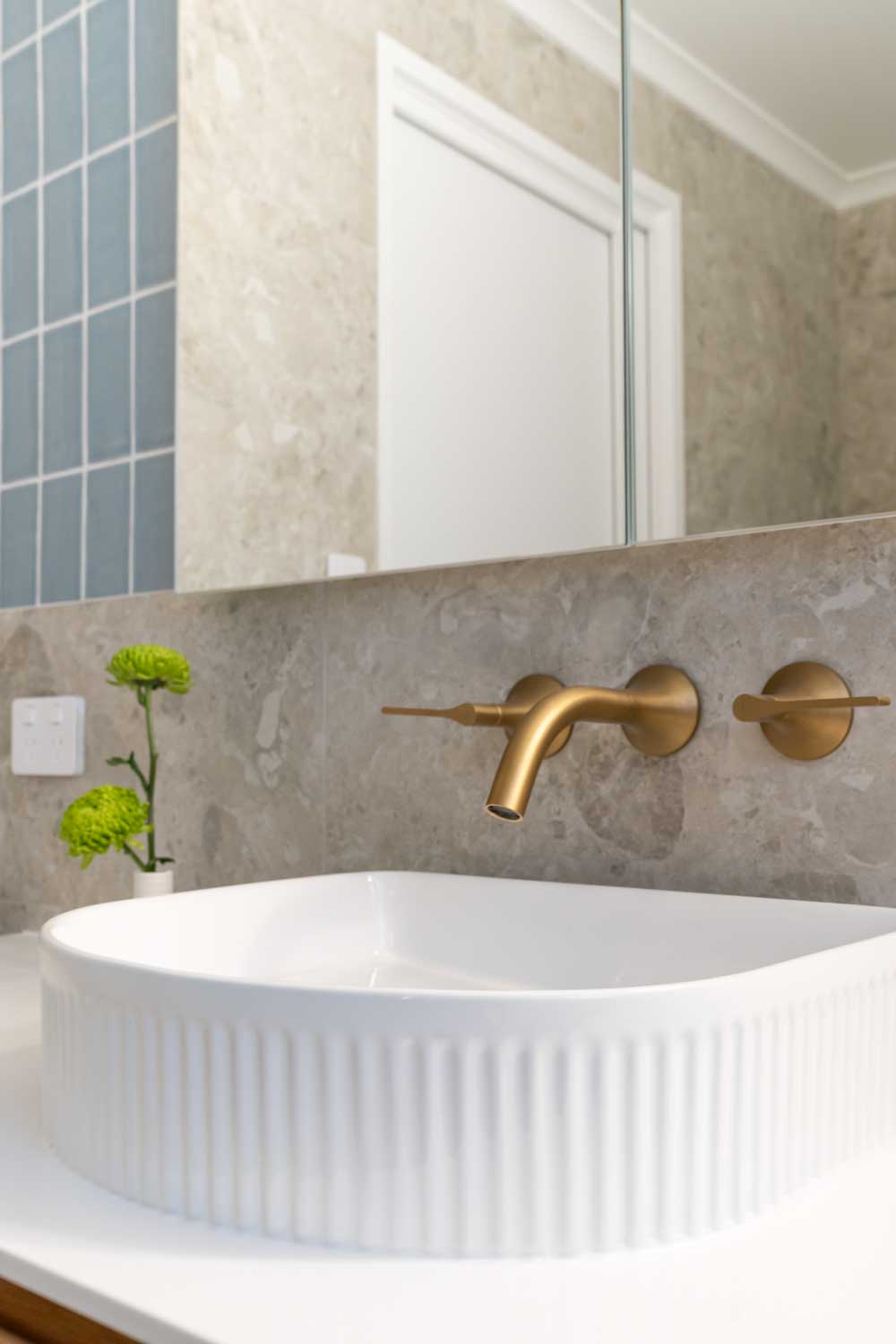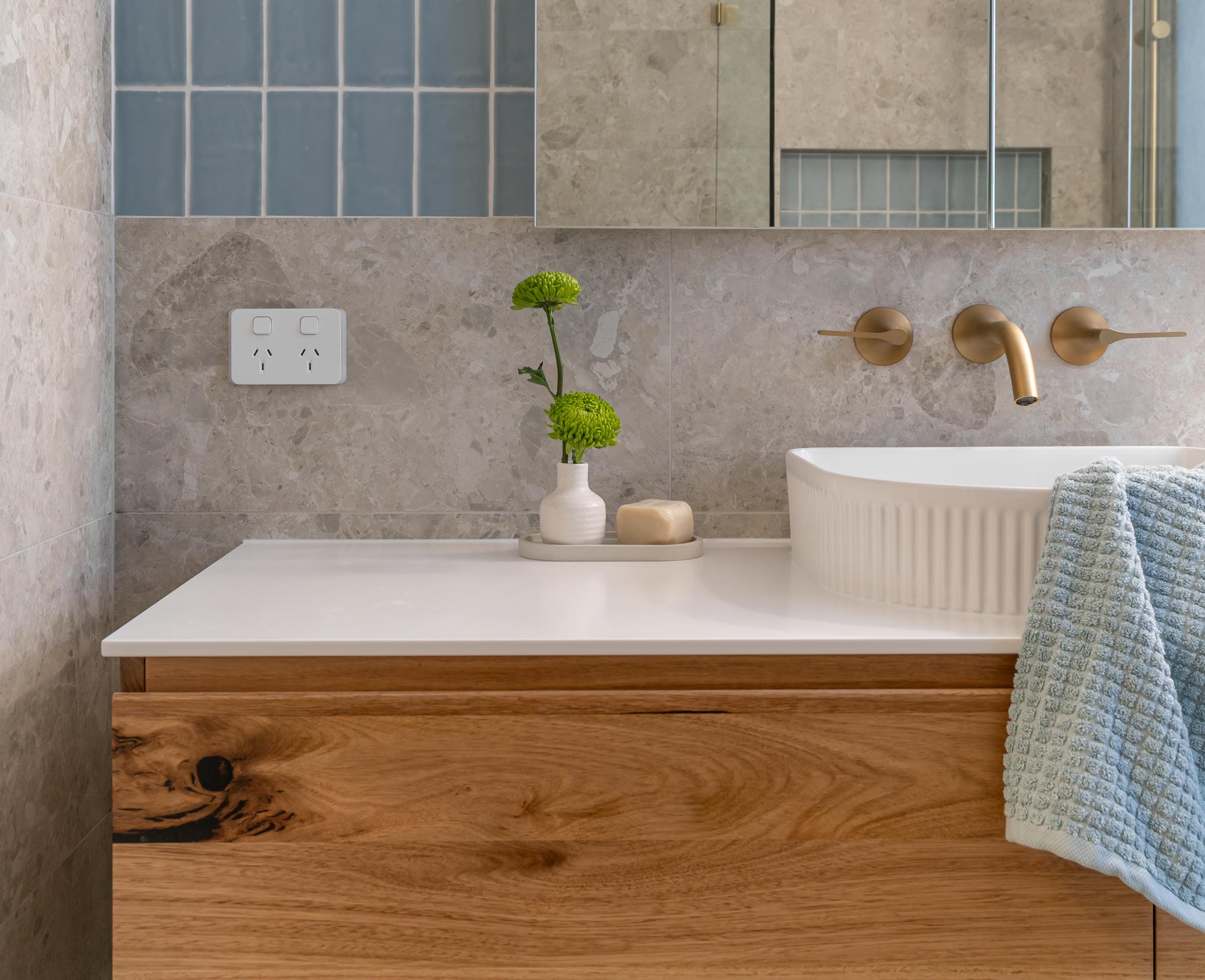 The brushed bronze tapware not only adds a unique contrast but also brings an organic, timeless quality to the overall design.