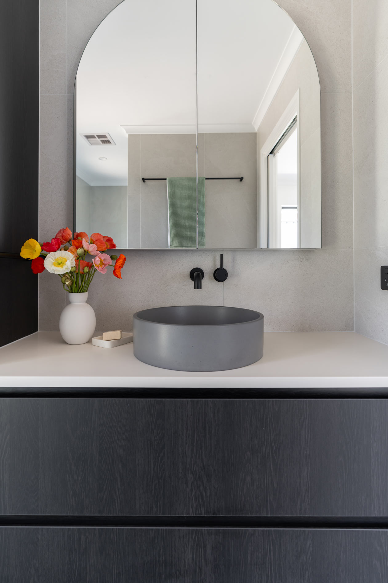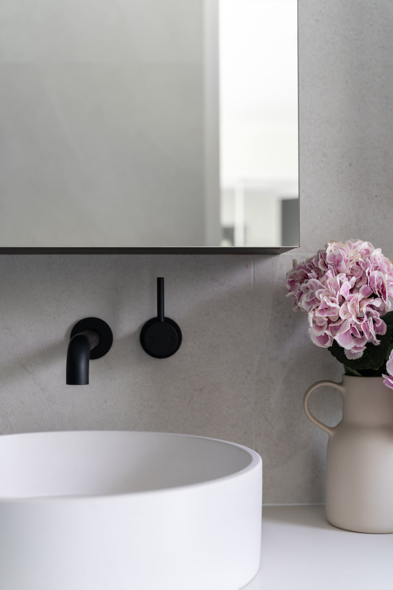 Each element was carefully selected to feel luxurious without being overpowering, allowing the materials – from the fluted concrete basins to the Japanese feature tiles – to speak for themselves.