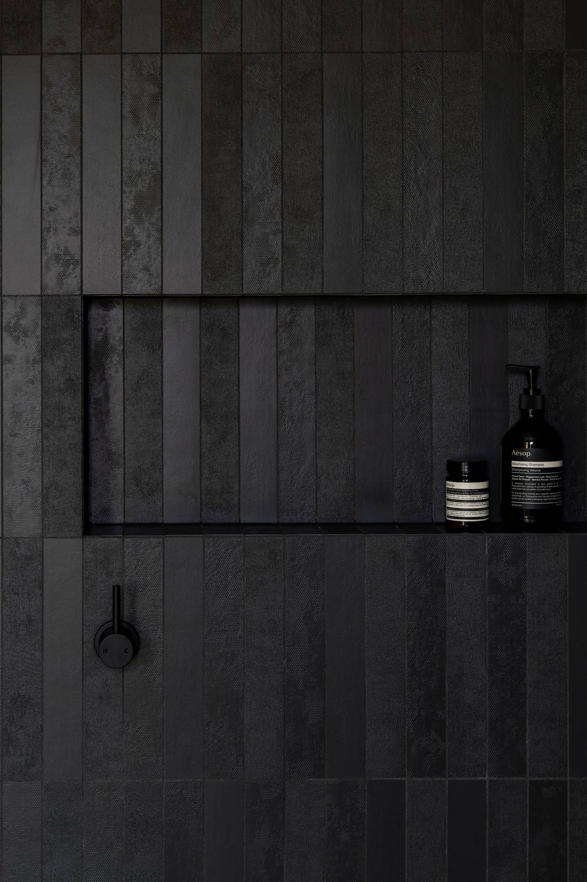 The overall aesthetic is dark, textural and refined – grounded by bespoke material selections and a commitment to quality. The bathrooms are dramatic yet calming, combining rich, tactile surfaces with simple, clean lines.