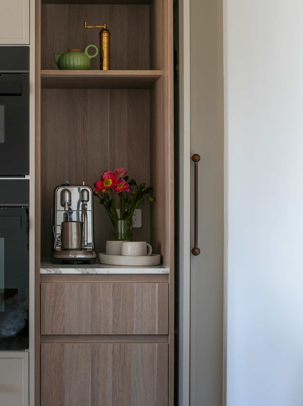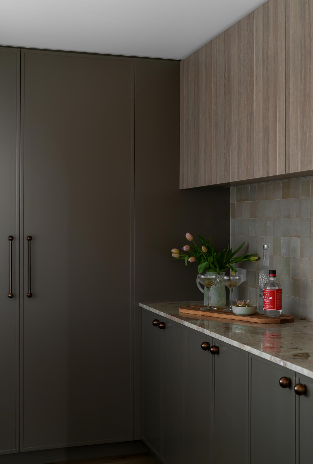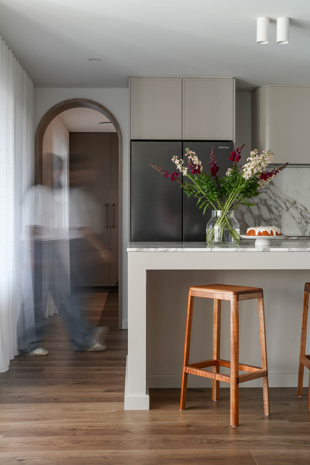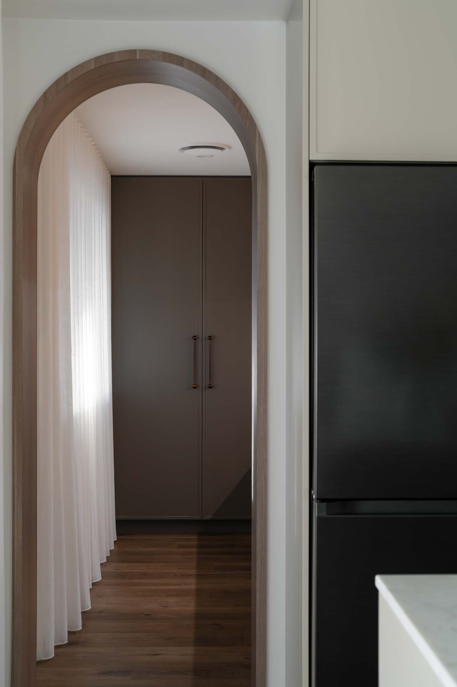 Another complexity involved the timber arch in the butler’s pantry. Achieving the appearance of a solid curved timber structure required the joinery team to construct and laminate it piece by piece, resulting in a flawless, cohesive design.