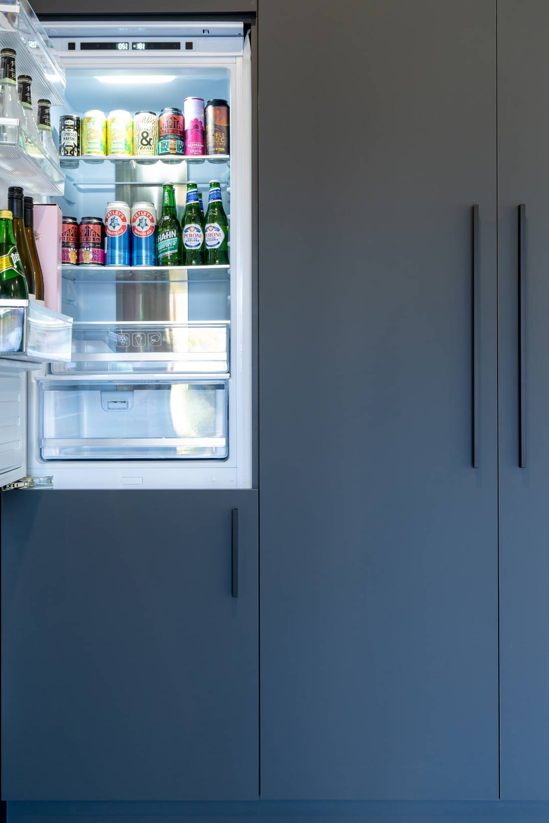 We installed bespoke joinery in the garage, tailored to the client’s needs. This included an integrated outdoor fridge, ample storage solutions, and a dedicated workbench area.