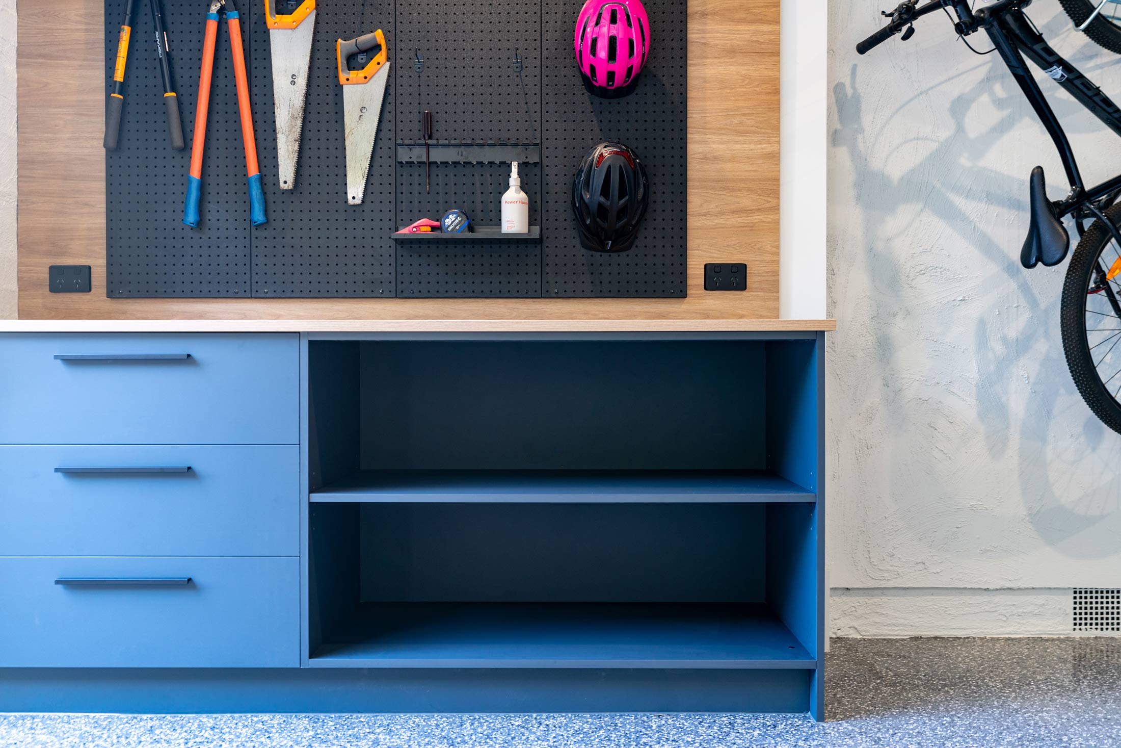 Although utilitarian, the garage renovation was approached with an eye for detail and style. The custom joinery features clean lines and durable finishes, making the space both practical and visually pleasing.