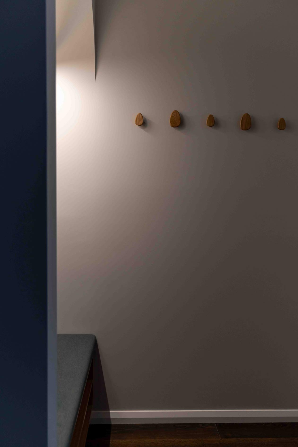 By reconfiguring the study space, a new powder room was created on the first floor, which required careful consideration of plumbing and waste disposal. Custom joinery solutions were developed for the study, TV unit, entry unit, and powder room to ensure a seamless, unified aesthetic.