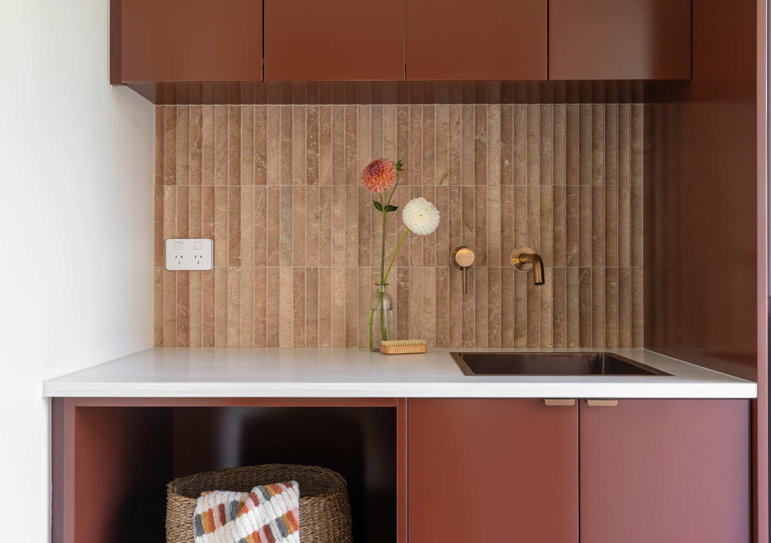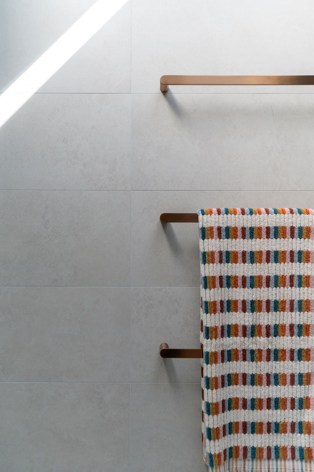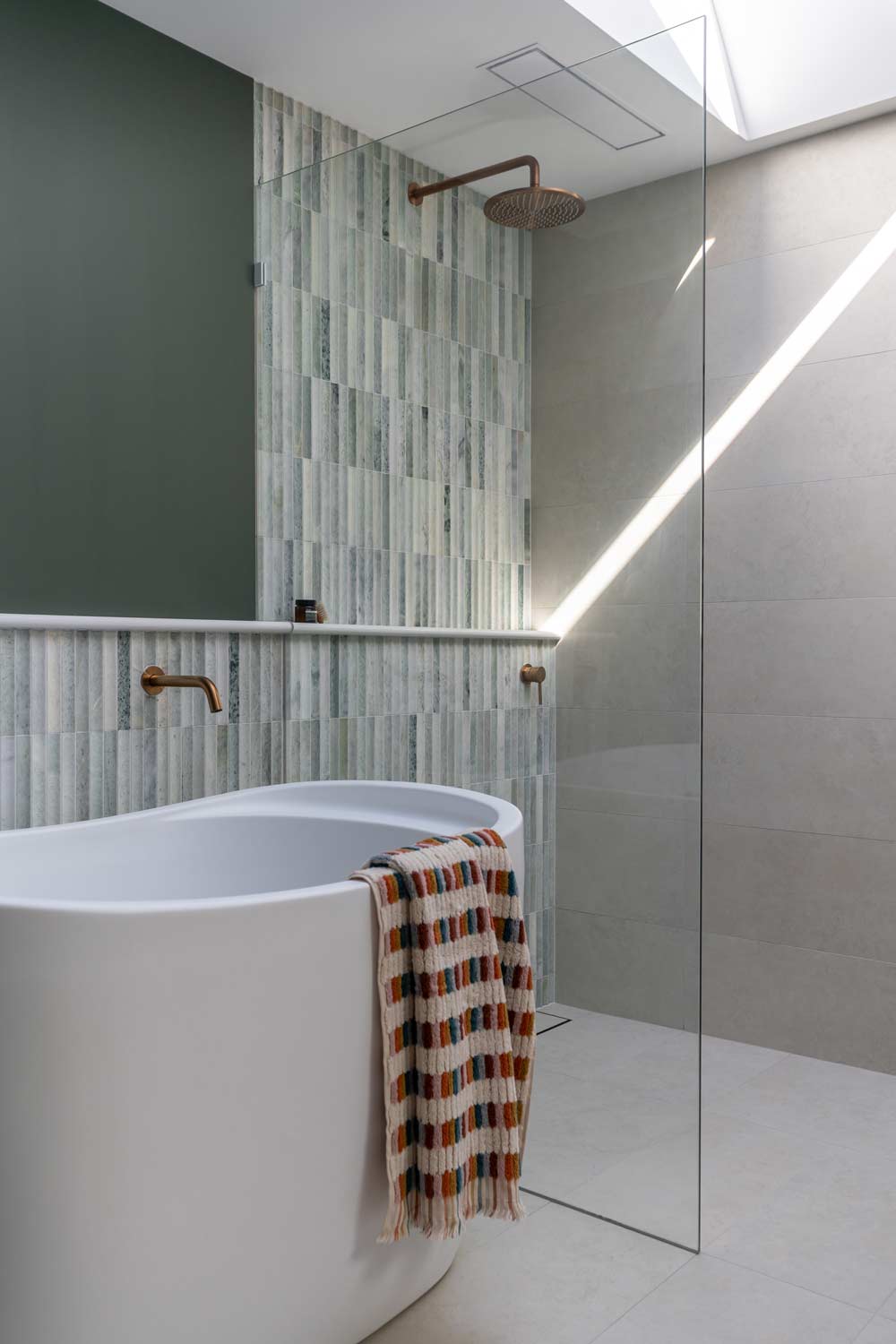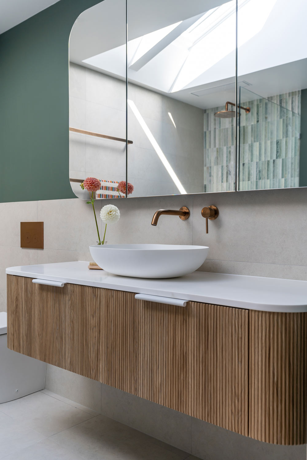 They also wanted to add personality and contrast. Warm timber and brass details keep things elegant and timeless, a bathroom designed to feel fresh now and for years to come.