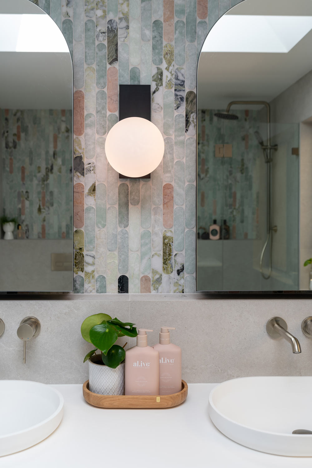 The pastel marble pill-shaped tiles became the focal point of the design, influencing the overall aesthetic.